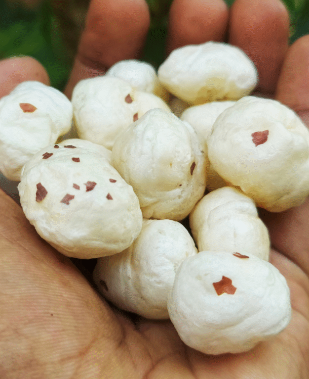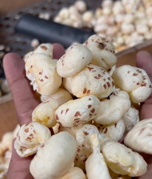 Process Makhana Making Process Makhana is harvested from lotus seeds, sun-dried, and roasted at high temperatures. The popped seeds are then cleaned, graded, and packed for consumption. View View View View View View