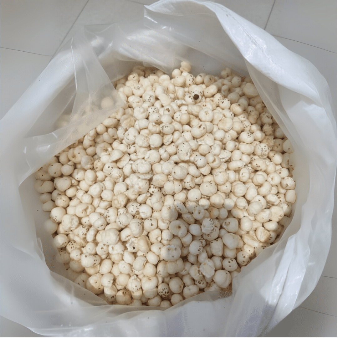 Mera Kisan is a trusted supplier and exporter of 4+ Suta Makhana (Foxnuts) — a premium grade above 15mm of popped Lotus seeds, sourced directly from the GI-tagged Mithila region of Bihar.