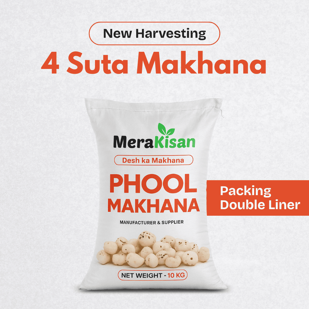 Mera Kisan is a leading supplier and exporter of 4 Suta Makhana (Foxnuts) — a popular medium-grade (13–15 mm) of popped lotus seeds, sourced directly from the GI-tagged region of Bihar.