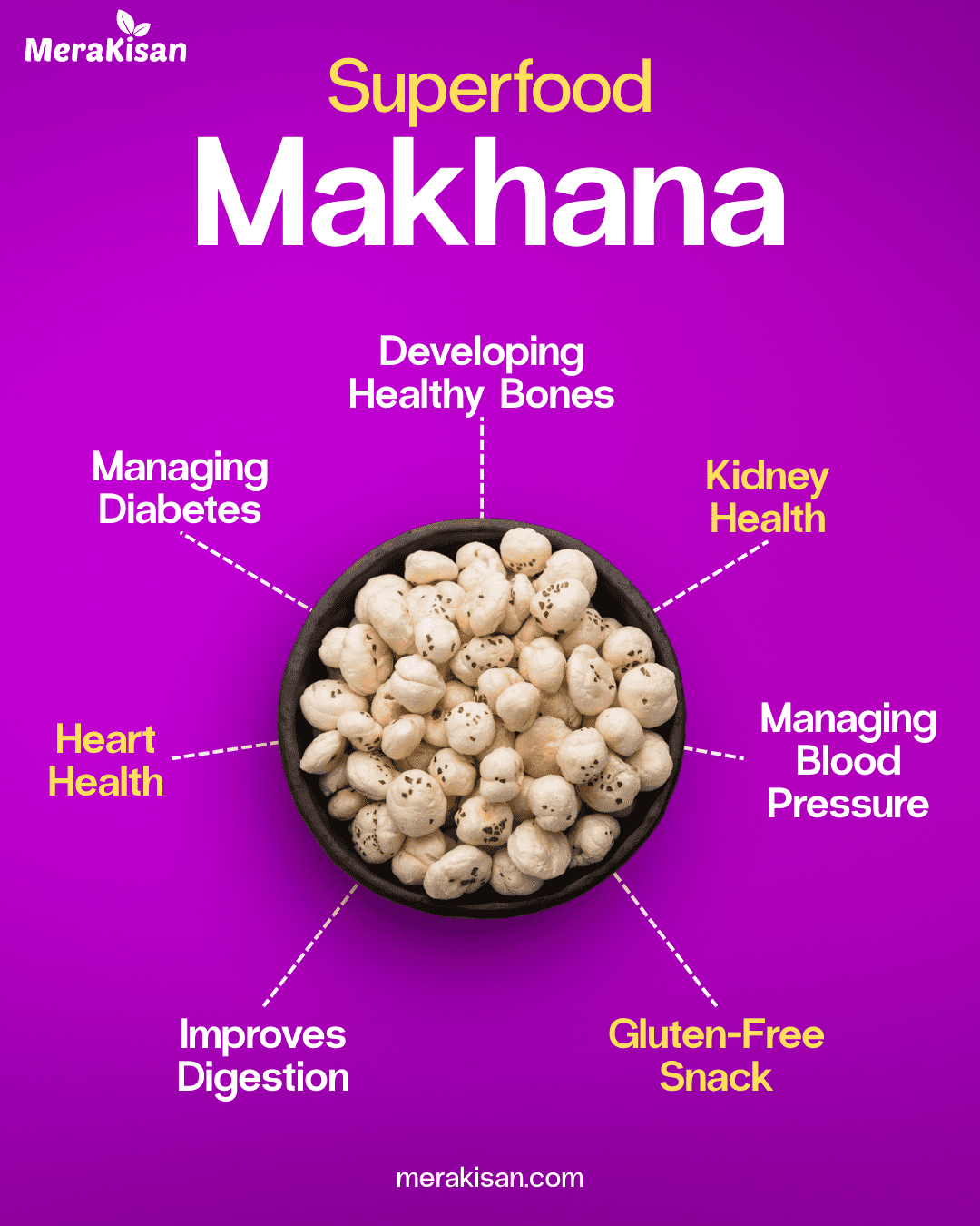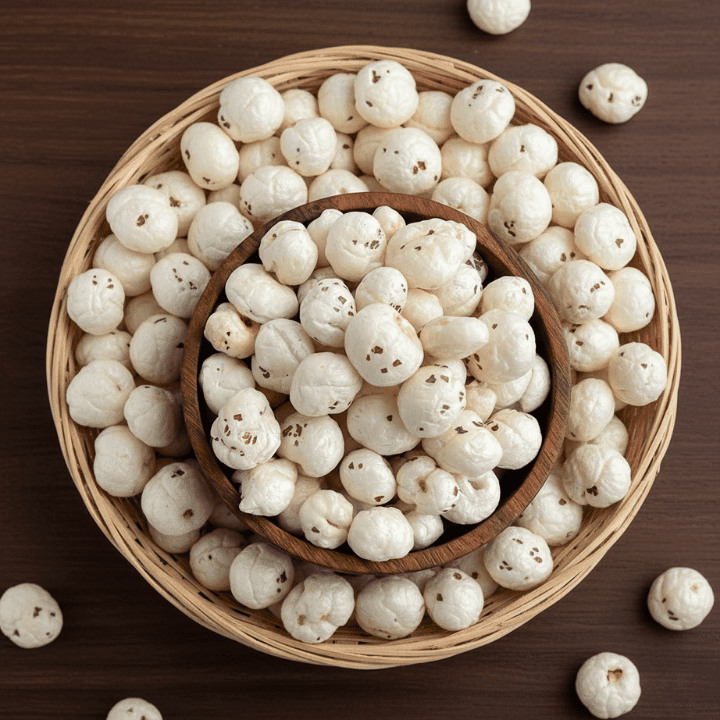 Mera Kisan is a leading supplier and exporter of 6+ Suta Makhana (Foxnuts) — an exclusive jumbo-grade above 21 mm of popped Water Lily seeds , sourced directly from the GI-tagged region of Bihar.