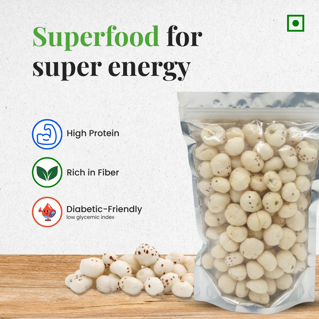 | Ingredients | 100% Natural Raw Makhana (Foxnuts) |