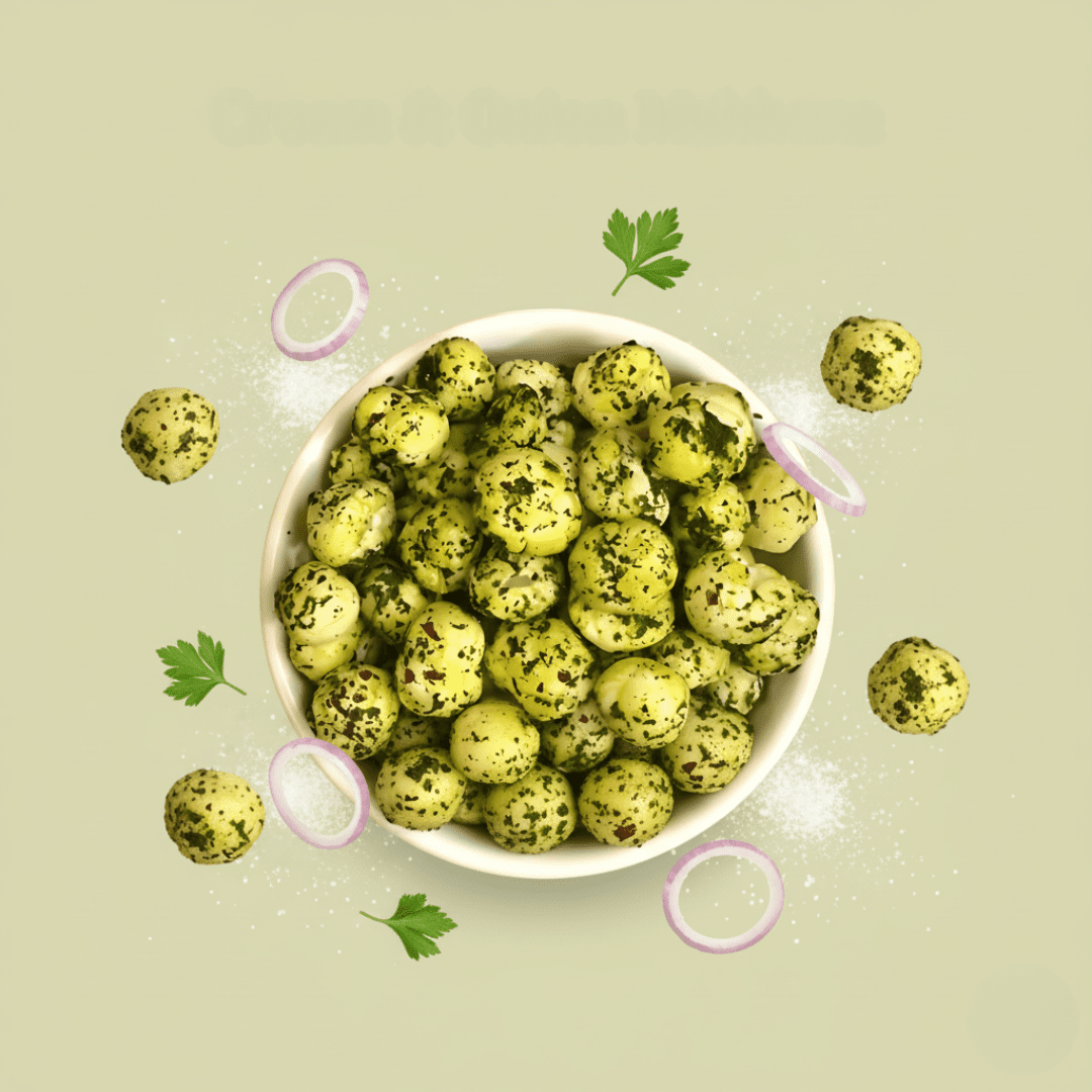 Mera Kisan Cream & Onion Makhana — export-grade, savory & creamy onion-flavoured foxnuts crafted for global retail brands, startups, supermarkets, FMCG brands, and international importers.