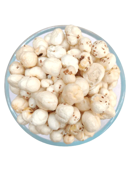 Makhana, also known as fox nuts or lotus seeds, comes from the water lily plant. It is roasted to make a light, crunchy, and healthy snack.
